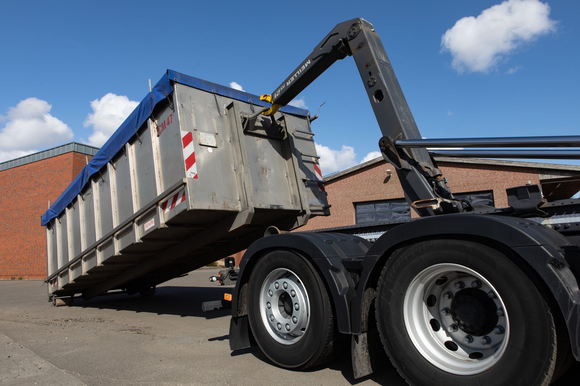 Wir sind in ganz Deutschland sowie in den Niederlanden, Dänemark, Tschechien und Schweden mit EU-Lizenz sicher unterwegs. Zu unserer modernen Flotte zählen 32 Abrollcontainerfahrzeuge, zwei Kühlfahrzeuge, ein Tankfahrzeug und ein Getreide-Sattelkipper (Stand 04/2022). Dank unserer Lizenz GMP+ dürfen wir seit Kurzem auch Getreide, Futtermittel, Düngemittel u. Ä. transportieren.